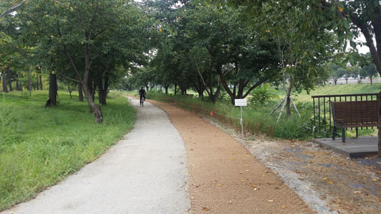 많은 분들이 광교호수공원이나 신대저수지를 말하는데, 이곳은 자전거 타기에 정말 안 좋습니다. 주말이면 자전거 통행을 막는 구간이 대부분이고 특히 광교호수공원은 사람들이 바글바글해서 걷거나 뛰기도 힘든 곳이에요. 신대저수지가 그나마 나은데 여기도 길 자체는 그닥..