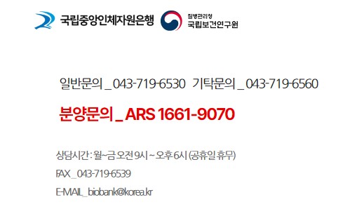 국립중앙인체자원은행 홈페이지 바로가기, 고객센터 전화번호 입니다!(biobank.nih.go.kr).