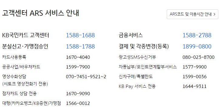 ✅ KB국민카드 대표ARS의 다이얼 번호는 아래 참고해주세요.