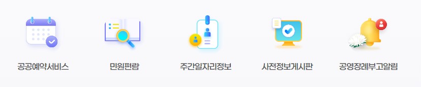 | 공공시설 예약 | 온라인 | 사전 예약 필요 |