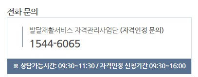 발달재활서비스 자격관리사업 고객센터 전화번호는 1544-6065 입니다. 다만 전화를 건다고 해서 바로 상담원과 연결되는 것은 아니고 음성 내용을 잘 듣다가 상담원 연결이 되는데요, 최근에는 상담원 연결 자체가 없는 경우가 많죠? 이럴 경우 전화로는 해결이 안 되고 해당 고객센터 카카오톡이나 자체 메신저로 상담원 연결을 요청해야 합니다.