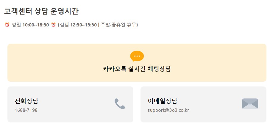 삼쩜삼 고객센터 전화번호는 1688-7198 입니다. 다만 전화를 건다고 해서 바로 상담원과 연결되는 것은 아니고 음성 내용을 잘 듣다가 상담원 연결이 되는데요, 최근에는 상담원 연결 자체가 없는 경우가 많죠? 이럴 경우 전화로는 해결이 안 되고 해당 고객센터 카카오톡이나 자체 메신저로 상담원 연결을 요청해야 합니다.