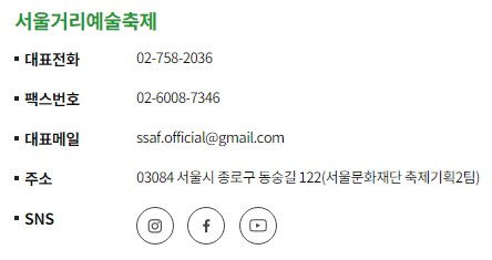 ✅ 서울거리예술축제의 고객센터 전화번호는 02-758-2036 입니다.