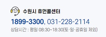 서비스신청이 어렵다면 수원시 휴먼콜센터인 1899-3300, 031-228-2114로 전화하세요!