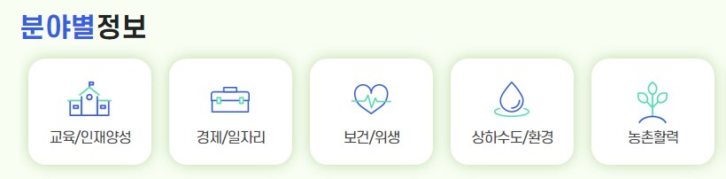 | 민원 처리 | 건강 증진 | 경제 지원 |