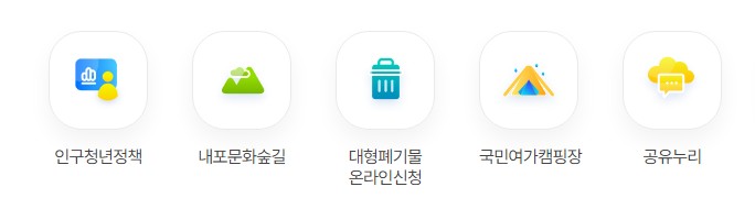 | 온라인 민원 서비스 | 문화 행사 지원 | 교육 지원 정책 |