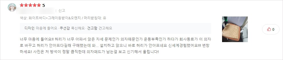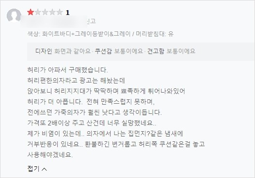 - 허리지지대가 불편했다.