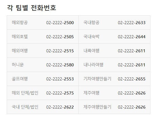 - 여행 상품 예약 및 문의: 다양한 여행 상품의 예약 및 변경 관련 서비스를 제공합니다.