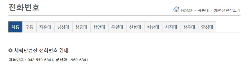 ✅전화번호는 계룡, 구룡, 자운대 등 각 체력단련장마다 따로 있으니 아래 버튼에서 확인하세요!