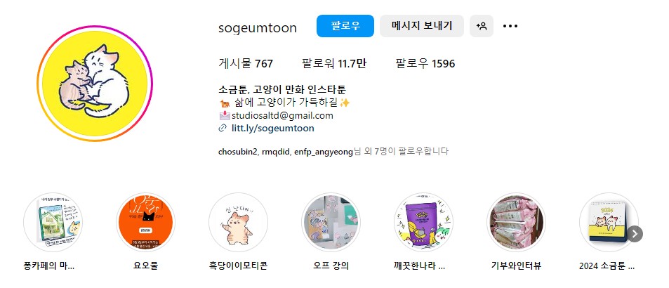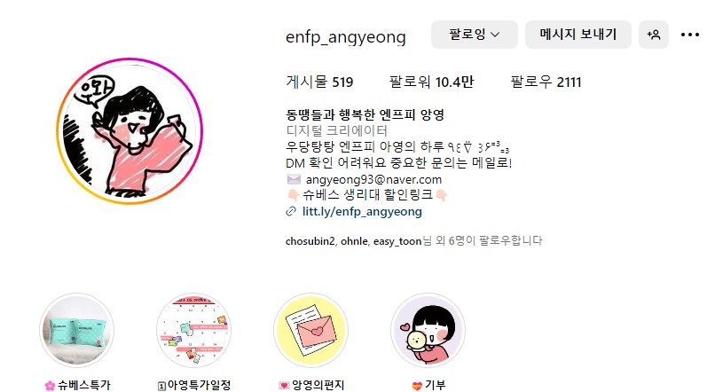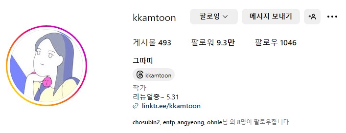 필자가 인스타툰 부업을 하기 전부터 좋아하던 인스타툰 작가들이 몇 있다. 이 분들은 팔로워가 평균 10만명 가까이 되는 분들이고 인스타툰계에서 성공한 사람들이라고 불리는 작가들이다.