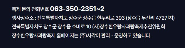 ✅ 장수한우랑사과랑 축제의 고객센터 전화번호는 063-350-2351 입니다.