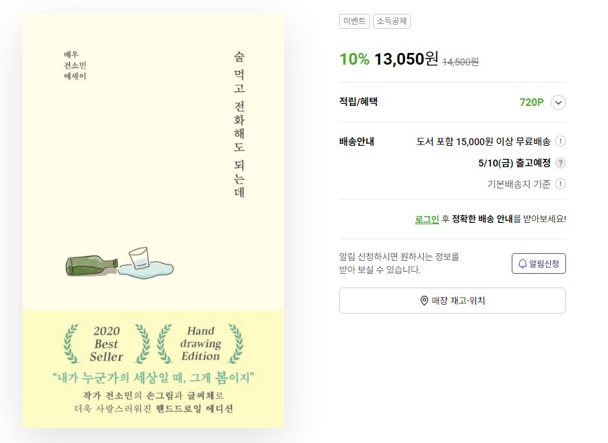 이와는 별개로 전소민씨는 에세이를 출간했습니다. '술 먹고 전화해도 되는데' 라는 책을 냈어요!