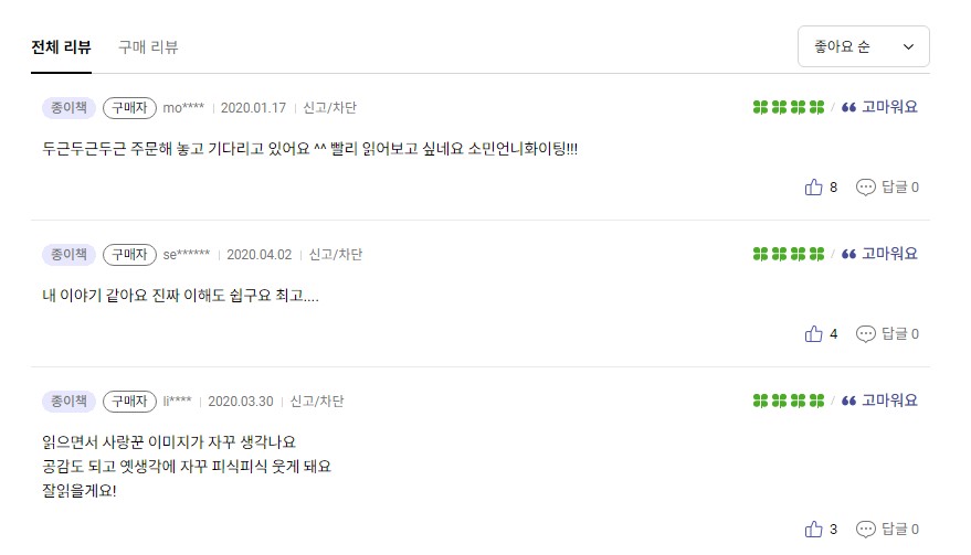 글과 함께 핸드드로잉 까지 있는 책이라고 하며 리뷰는 더욱 좋으니까 구매하실 분들ㄹ은 퍼뜩 구매하시길 바랄게요. 런닝맨에서도 시적 감수성과 사랑에 대한 이야기를 자주 하던 전소민씨였는데, 에세이까지 출간하다니 대단하다는 생각이 듭니다.