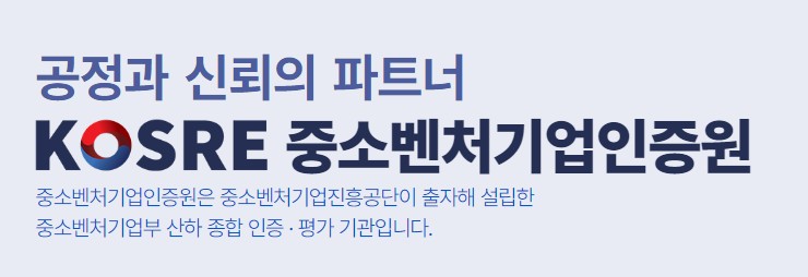 중소벤처기업인증원(KOSRE)은 중소기업과 벤처기업의 기술력 및 경영 능력을 인증하고 이를 통해 기업의 경쟁력을 높이는 데 기여하는 기관입니다. 이 기관은 다양한 인증 프로그램을 통해 기업이 국내외 시장에서 신뢰받는 파트너로 자리 잡을 수 있도록 돕고 있습니다. 특히, 기술혁신형 중소기업 인증, 경영혁신형 중소기업 인증 등 다양한 인증 서비스를 제공하여 기업의 성장과 발전을 지원하고 있습니다.