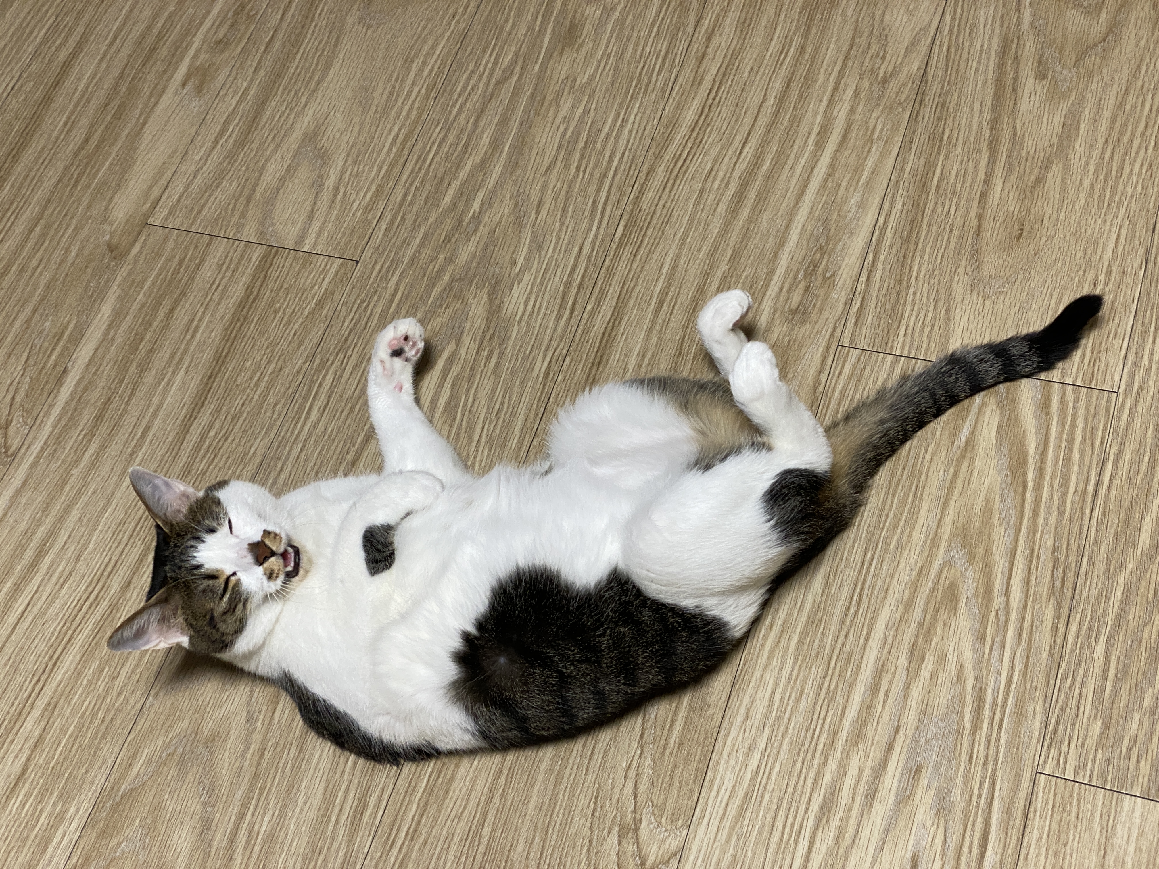 고양이가 당신 앞에서 배를 발라당 깐다면 당신을 신뢰하고 좋아하고 있다는 뜻이에요. 집사로써 흐뭇하게 봐도 좋습니다. 대신 발라당을 하기 시작하면 집 방바닥을 깨끗하게 유지해주세요.