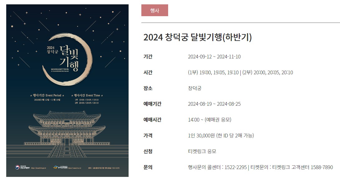 ✅ 창덕궁달빛기행의 고객센터 전화번호는 1522-2295 입니다. 티켓관련 문의는 1588-7890입니다.