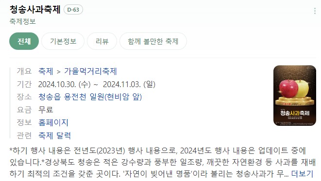 ✅ 청송사과축제는 2024년 일정이 아직 나와있지 않아요! 2023년도를 참고한거니까 10월쯤에 다시 확인하세요!
