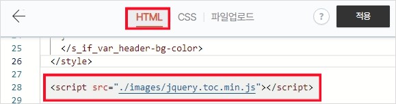 - HTML에서 /head 코드 앞에 스크립트 넣기