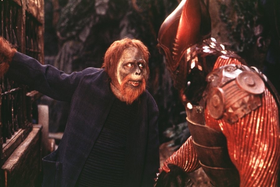 팀 버튼 감독의 혹성탈출입니다. 원작에 충실한 작품으로 역대 작품과는 다른 세계관이 펼쳐집니다. 서기 2029년 인간을 대신해 우주 비행선을 조종하도록 훈련받은 침팬지가 임무 도중 실종되는데 프로젝트의 책임자인 레오는 침팬지를 구조하러 나갔다가 어떤 행성에 불시착합니다. 이 행성은 유인원이 지배하며 인간들을 노예로 삼고 있습니다.