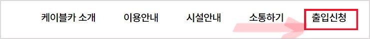 접속한 후 홈페이지 맨 위에 예약이 아니라 출입신청을 눌러줍니다. 문구가 희한하죠? ㅋㅋ