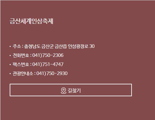 ✅ 금산인삼축제의 고객센터 전화번호는 041-750-2306, 2626 입니다.