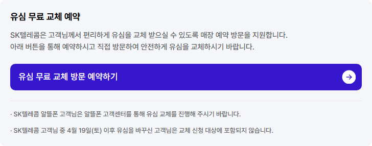 - 유심 무료 교체 예약 및 매장 방문 안내